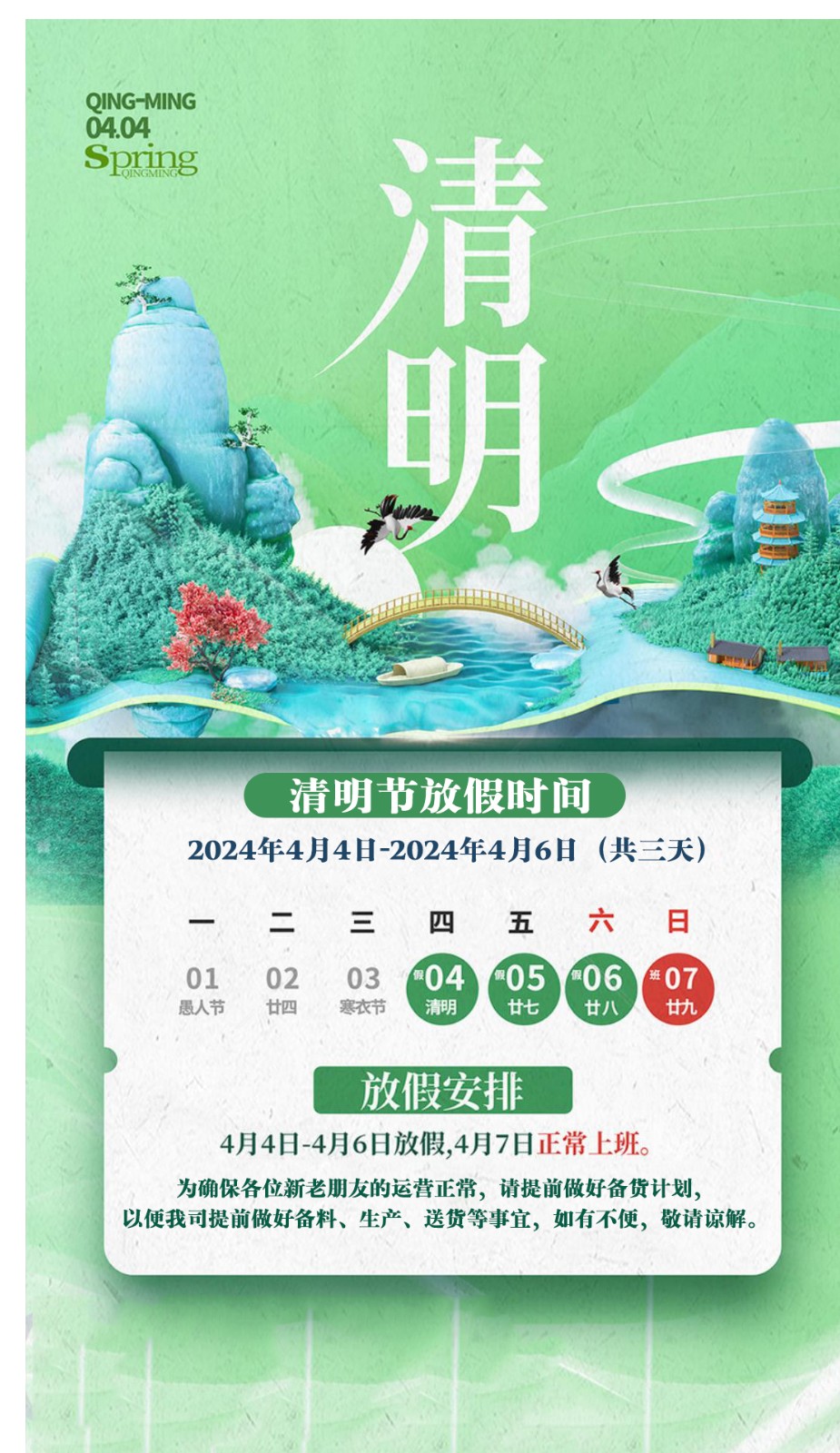 统佳光电2024清明放假通知