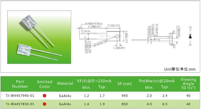 led直插IR4457红外线产品应用:● 背光模组应用● 汽车内饰应用● 高端数码应用● 信号指示应用● 智能家居应用● 工业设备应用