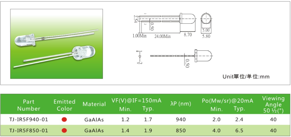 led直插IR5F红外线产品应用:● 背光模组应用● 汽车内饰应用● 高端数码应用● 信号指示应用● 智能家居应用● 工业设备应用