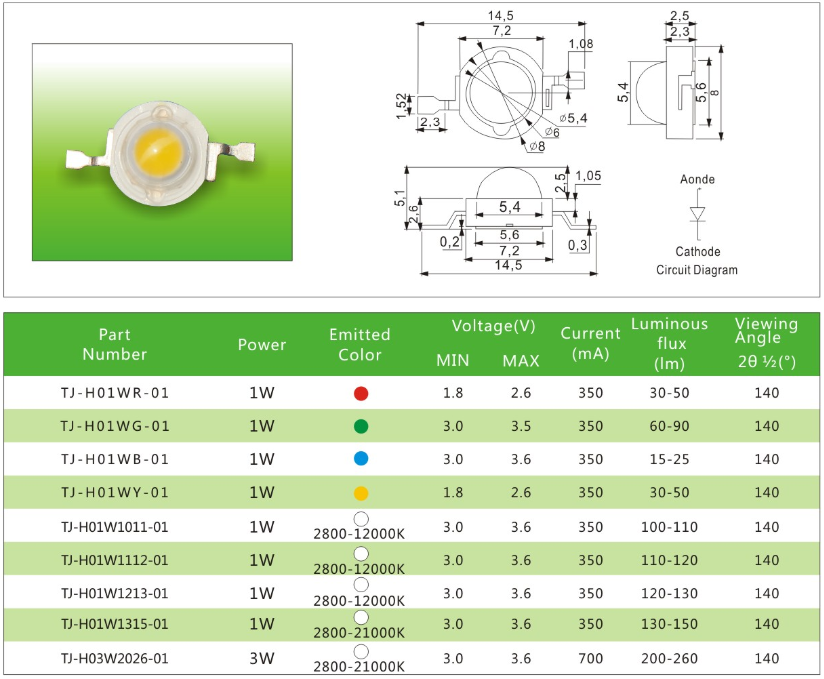 仿流明1W灯珠产品特征:●功耗低●亮度高●低衰减●高效能●超长寿命●多种色彩可选择;可用于包含电子产品背光源、高端数码家电;指示灯如工业设备、智能家居、通讯设备、汽车内饰等。