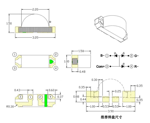 贴片3010全彩led灯珠:可用于包含电子产品背光源、高端数码家电;指示灯如工业设备、智能家居、通讯设备、汽车内饰等。