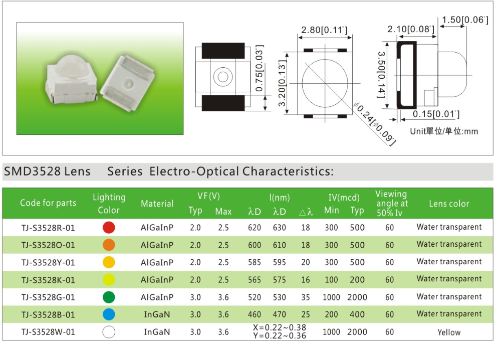 贴片3528凸头led灯珠产品应用:●背光模组应用●汽车内饰应用●高端数码应用●信号指示应用●智能家居应用●一般照明应用
