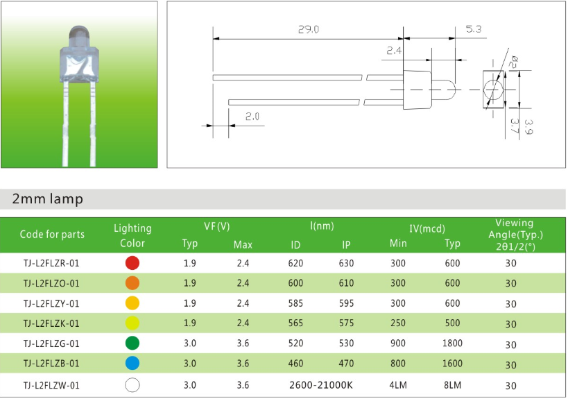 2mm直插led灯珠产品应用:●背光模组应用●汽车内饰应用●高端数码应用●信号指示应用●智能家居应用●一般照明应用