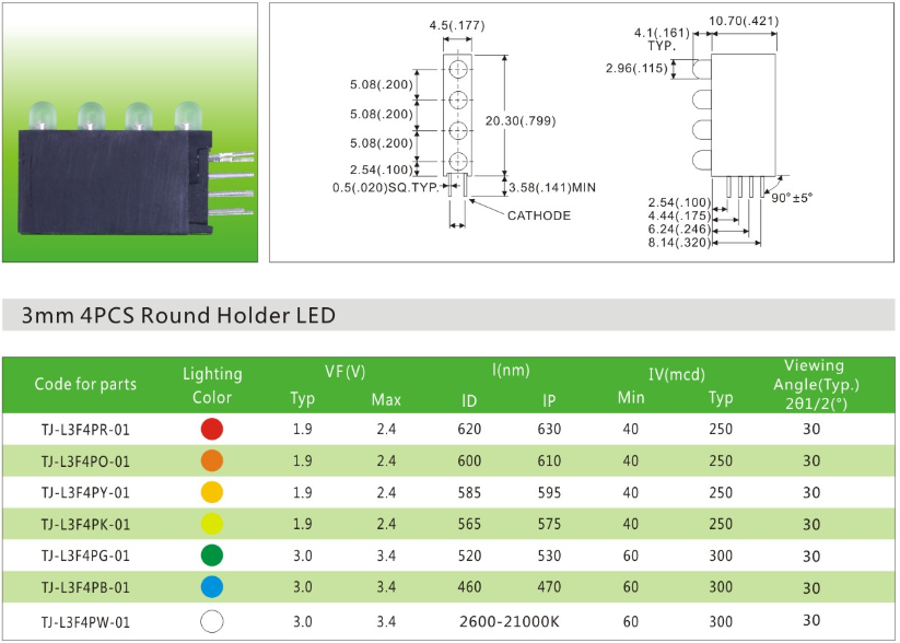 4连体带座LED灯珠胶体颜色和亮度可以按要求定制,4个LED灯珠也可以不同颜色搭配!低电压驱动,环保节能,体积小,安装简便,亮度搞,散射角度大,一致性好,更多带座连体灯外观可以咨询我司业务代表!